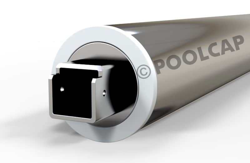 Der absolut wasserdichte Edelstahl V4A Antrieb sitzt direkt in der Wickelwelle aus V4A. Der Antrieb ist eine eigene Einheit die in die Welle einfach nur eingeschoben wird.
