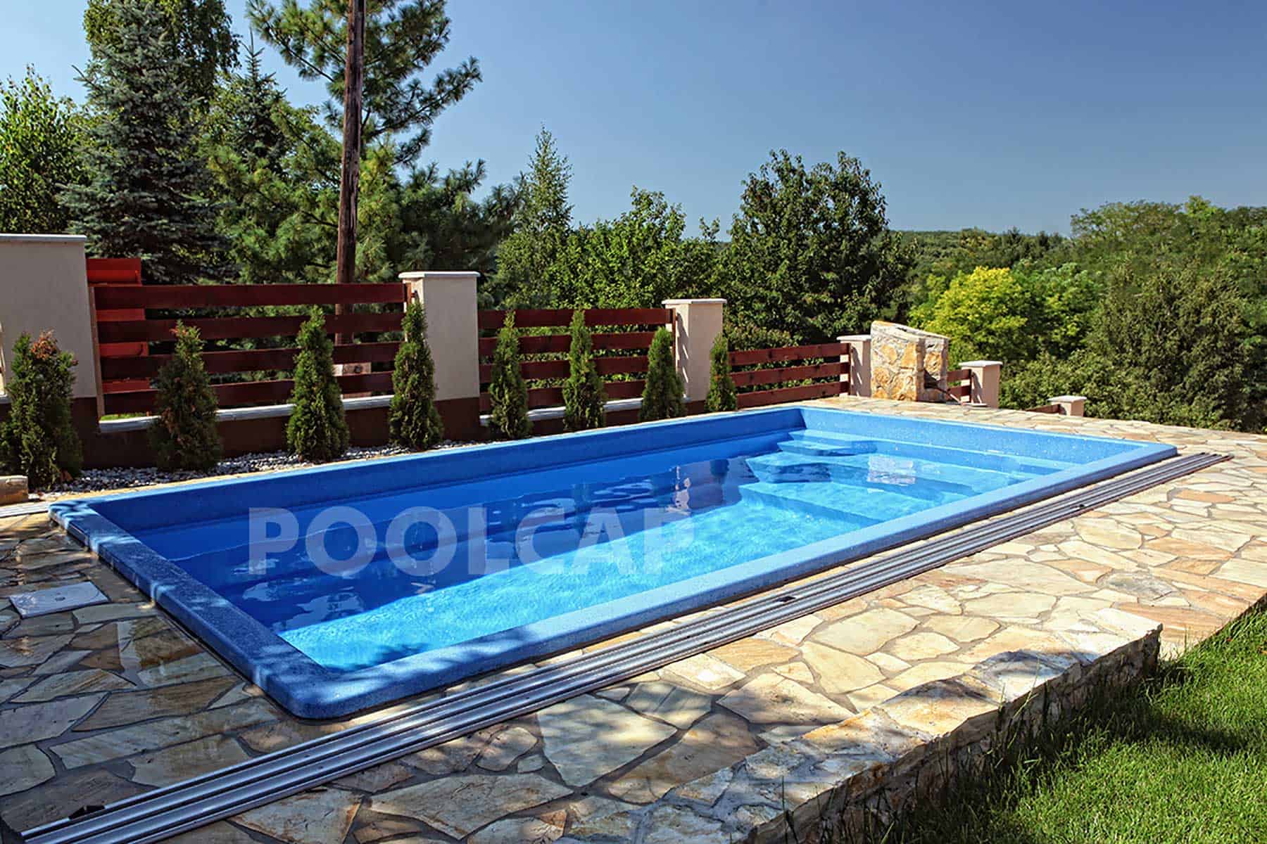 Das zweitkleinste Beckenmodell von Poolcap. Diese Entwicklung erlaubt uns, auch bei kleineren Grundstücken sowie engen Einbauverhältnissen eine optimale Lösung anbieten zu können. Auch hier müssen Sie nicht auf Ihren Traum verzichten. Im Becken Solaris befindet sich eine Sitzbank, die es auch ermöglicht, Massagesysteme einzubauen.